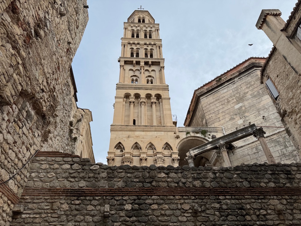 | Split. The tower is new, built in 1100 CE. The palace was completed in 305 CE. |