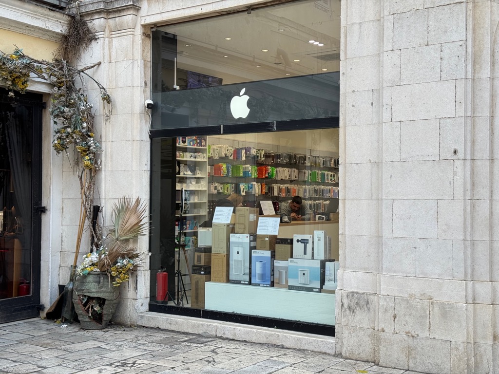 I sought chocolate stores and games stores without much success and then walked a little around the town outside of the old town. I happened across a person waiting at a bus stop using a MacBook. I wish I had asked to take a photo; it is always fun to see somebody using my work at random places.