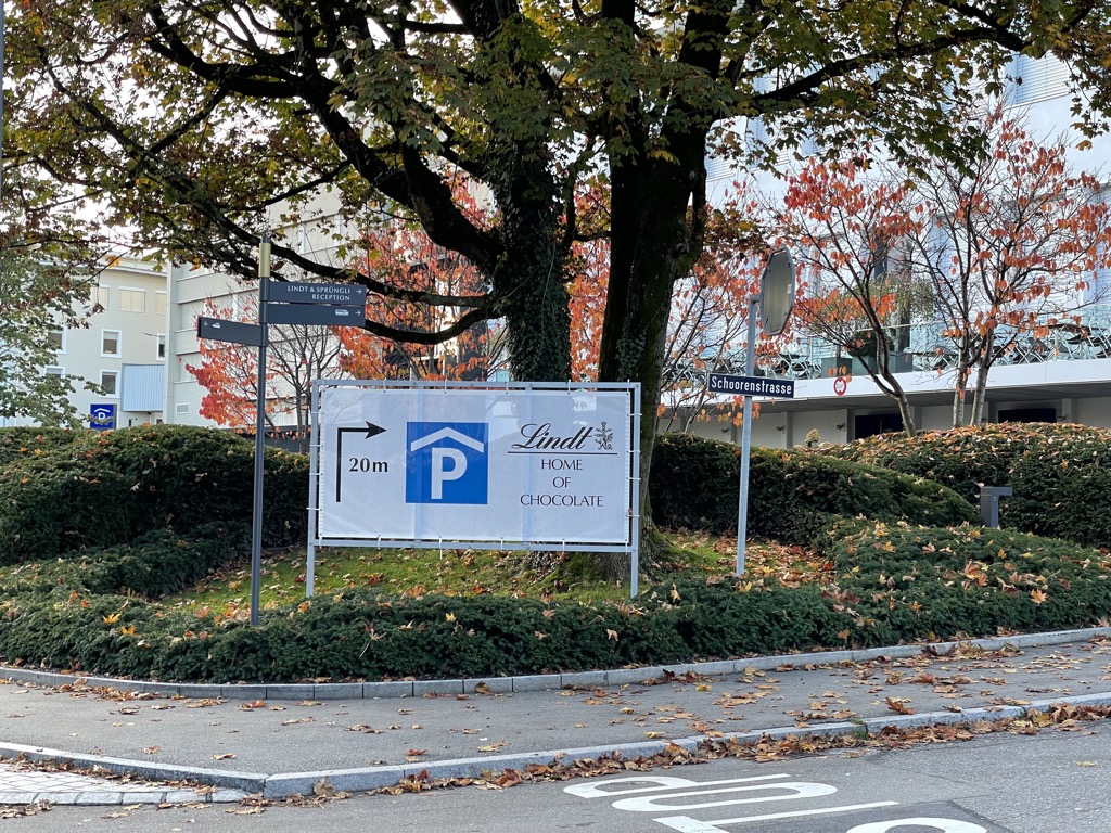 In front of the Lindt headquarters, and a block toward the shore, are these