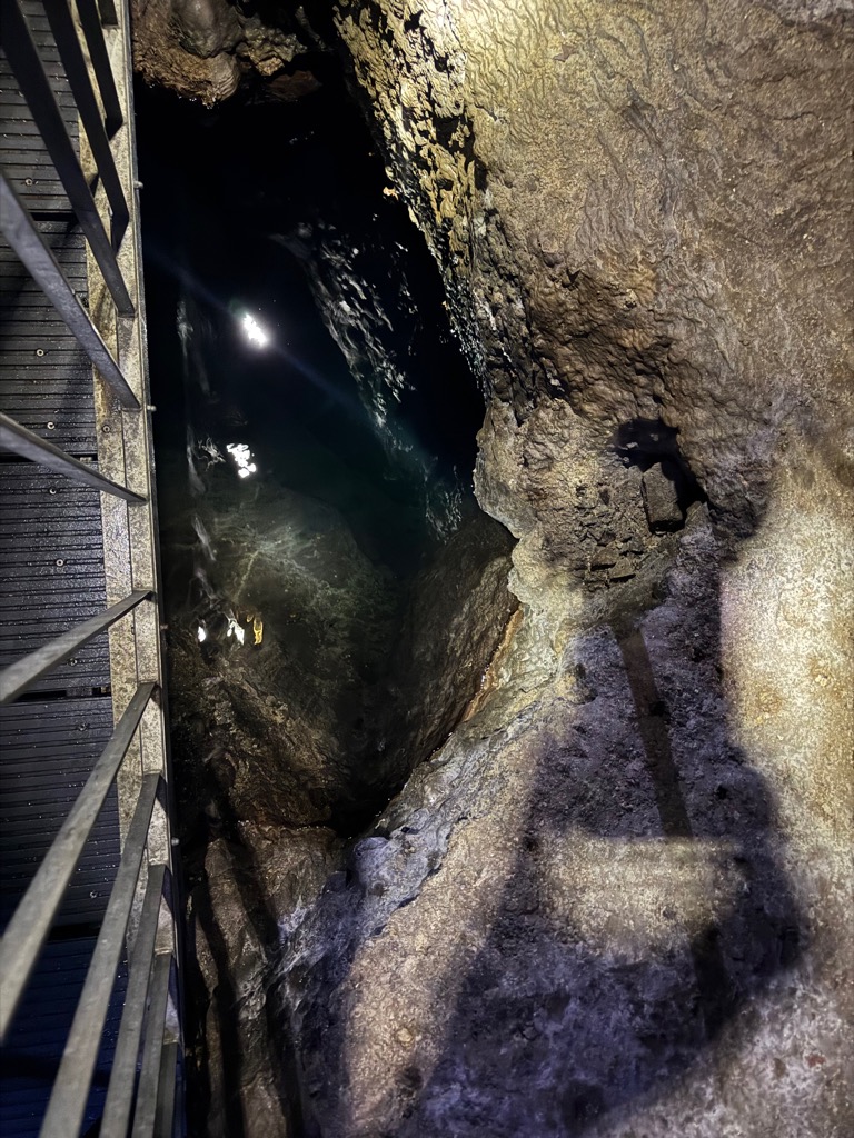 | In the silver mine, looking down. |