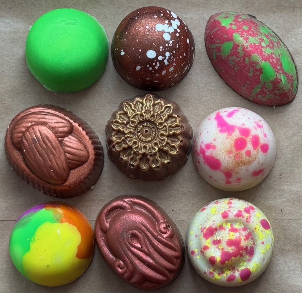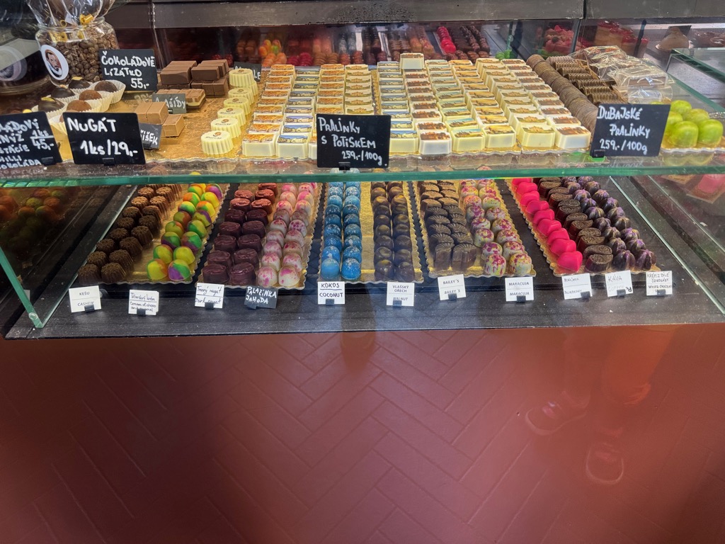 | Andělské Pralinky chocolates in Cafe Dačický. |