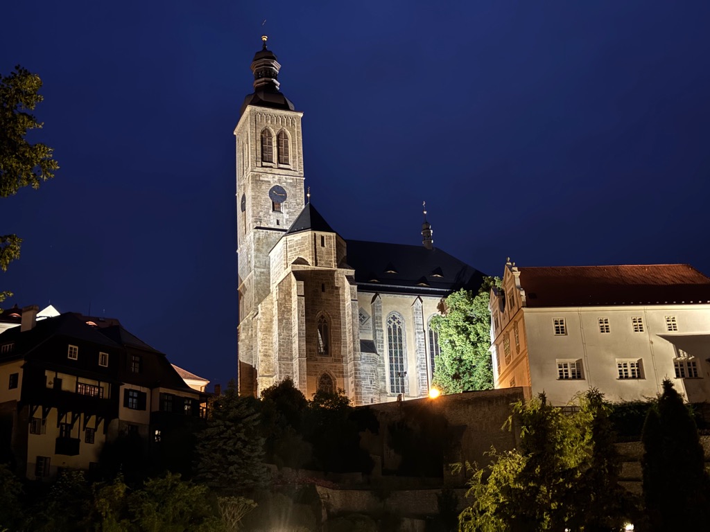 | St. Barbara’s Cathedral and GASK at night. |