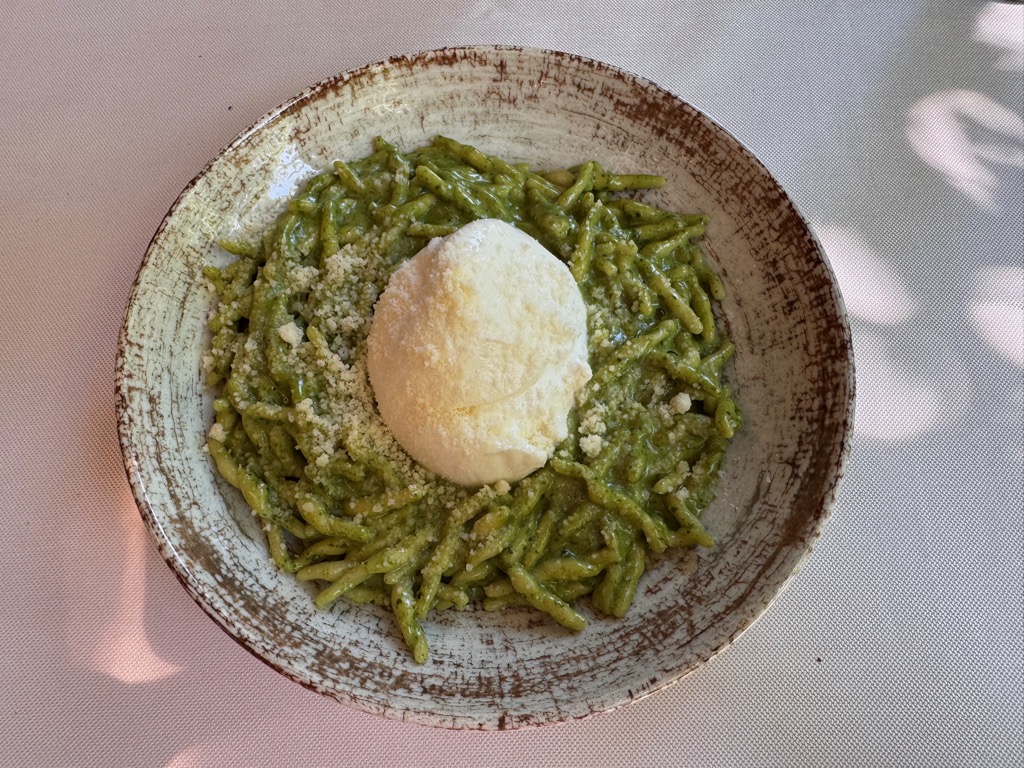 (fresh homemade pasta with pesto and burrata). Lunch while waiting for my hotel check-in. |