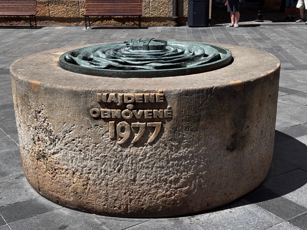| Vtáčia Fontána. Multiple levels of fountain: Low for cats and dogs, medium for horses, high for birds. |