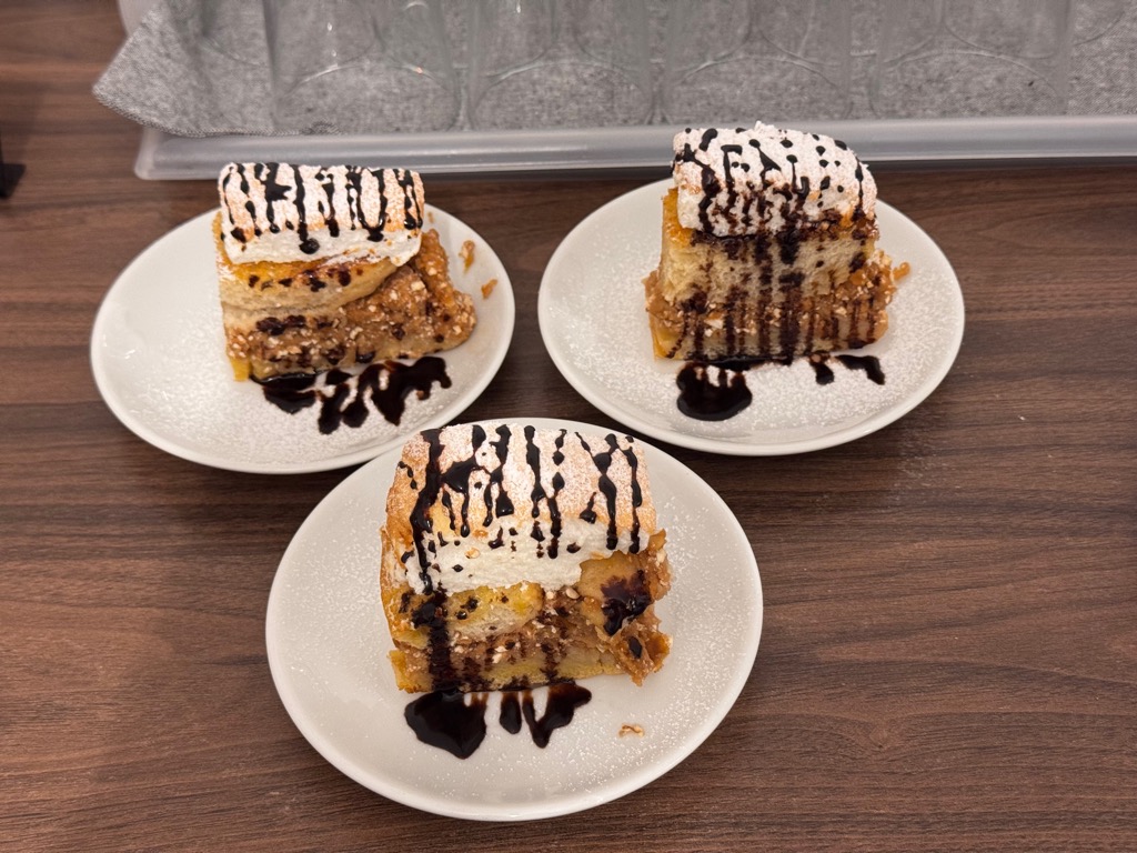 | At hotel breakfast. Looked interesting, but it was more like bread than cake. |