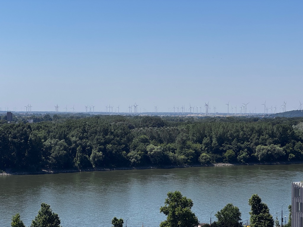 | Lots of wind turbines. |