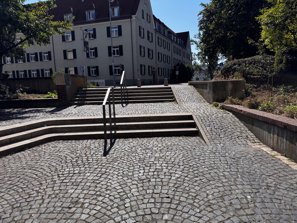 | Cobblestone wheelchair ramp. |