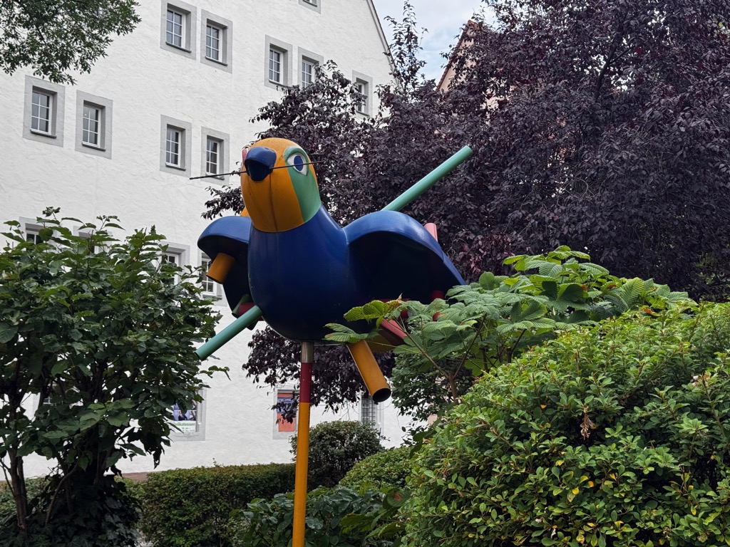 the sparrow sculptures that are still on display outside are aging and