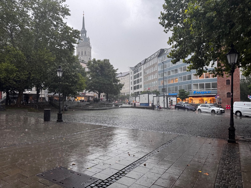 In München, I investigated several chocolate stores, most not noteworthy. Walking around town was interrupted now and then by rain.