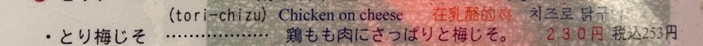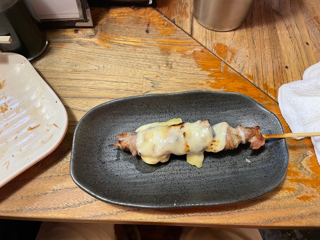 | Cheese on chicken skewer. ¥1930, $13.12. |