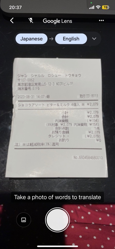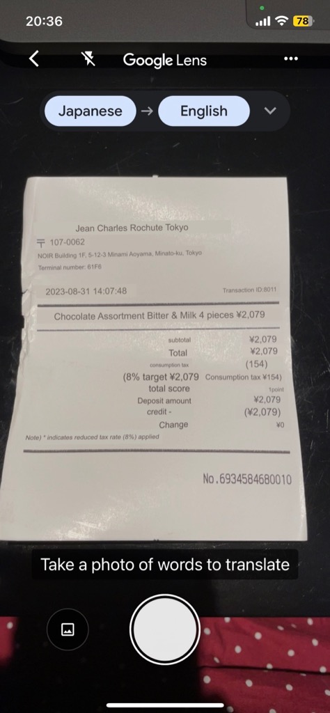 | Chocolate receipt, translated. |