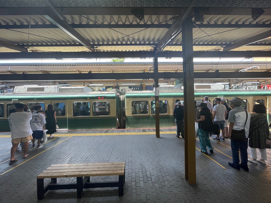 | Enoden tram at Kamakura Station. |
