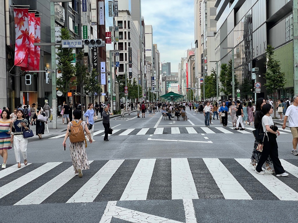 | Ginza. Apparently known as a shopping area. Part of it is made a pedestrian area at times. |