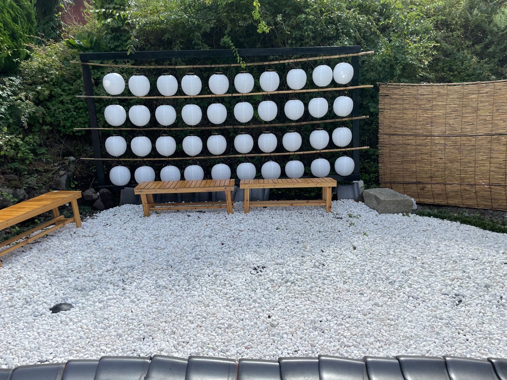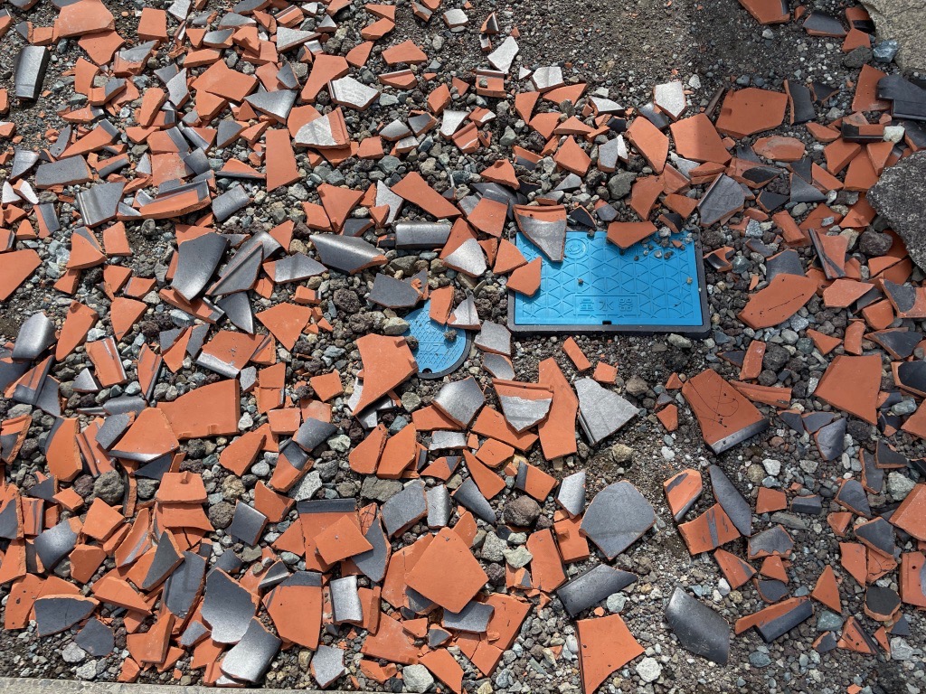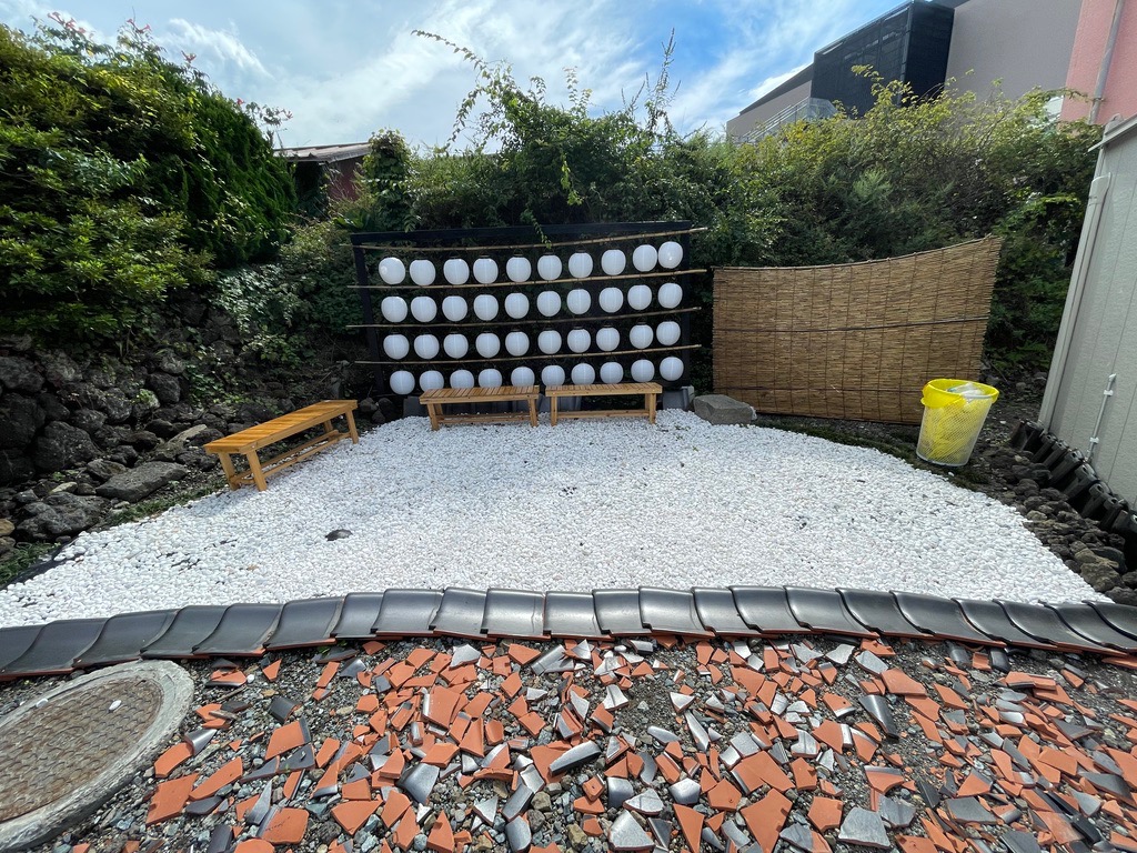 | Akichan food stand. The broken roof slate as ground cover is interesting. |