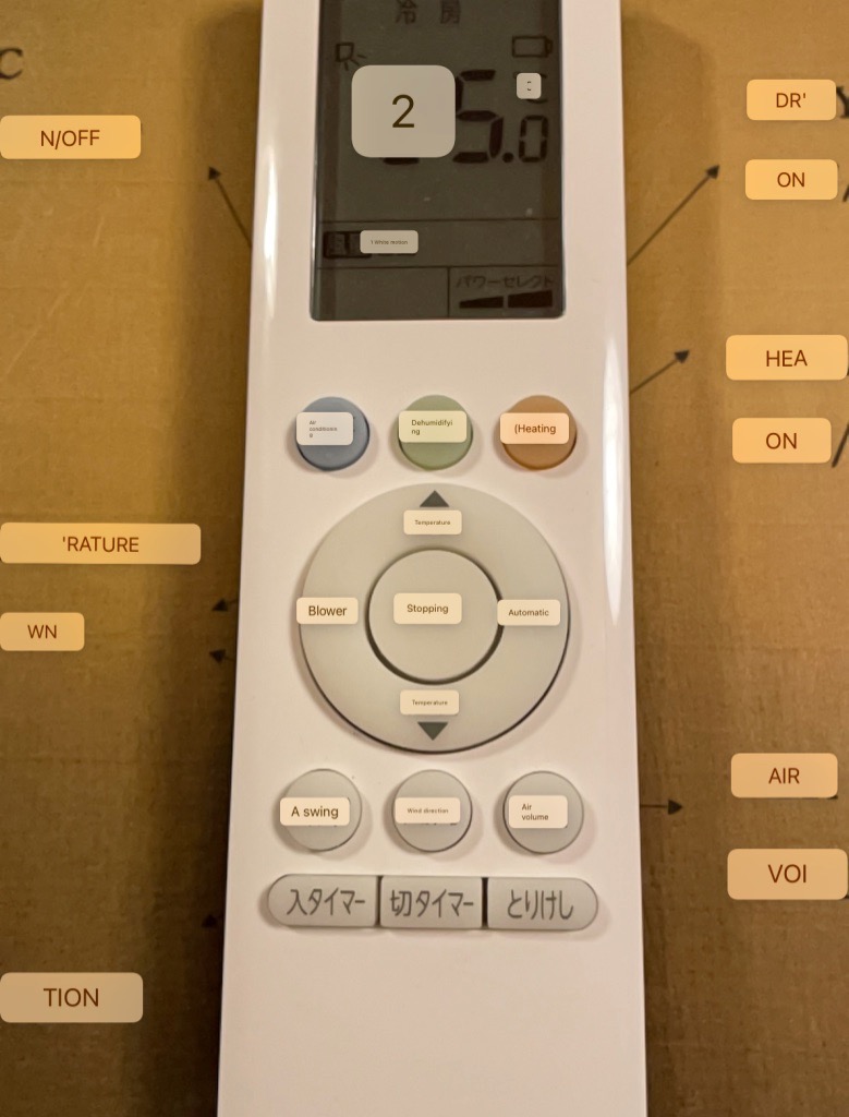 | Ryokan Gio Yoshiima. In spite of the translations, I could not correlate any of these buttons with responses from the air conditioner. |