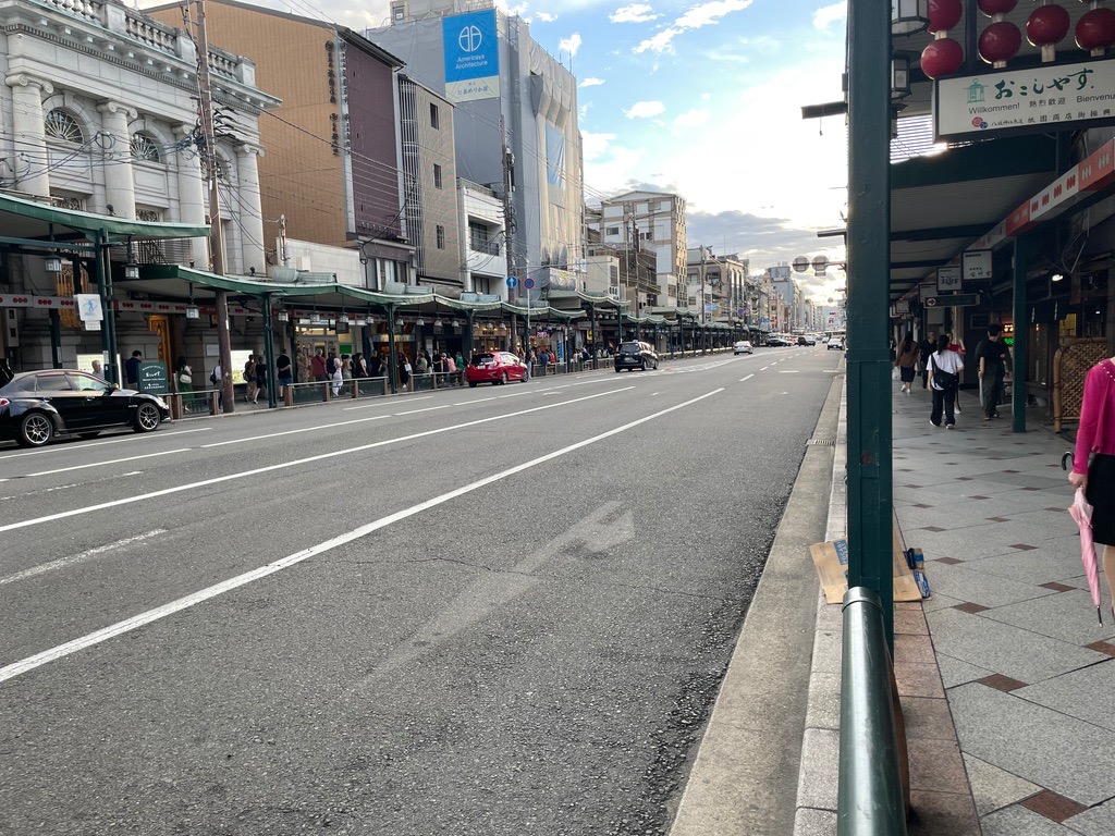 | Kyoto. There are lots of narrow streets with little room for pedestrians. But it works. Drivers drive at an appropriate speed, and people pass each other. |