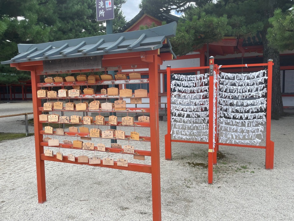 | Omikuji at Hei’an Shrine. Omikuji are fortunes written on strips of paper. |